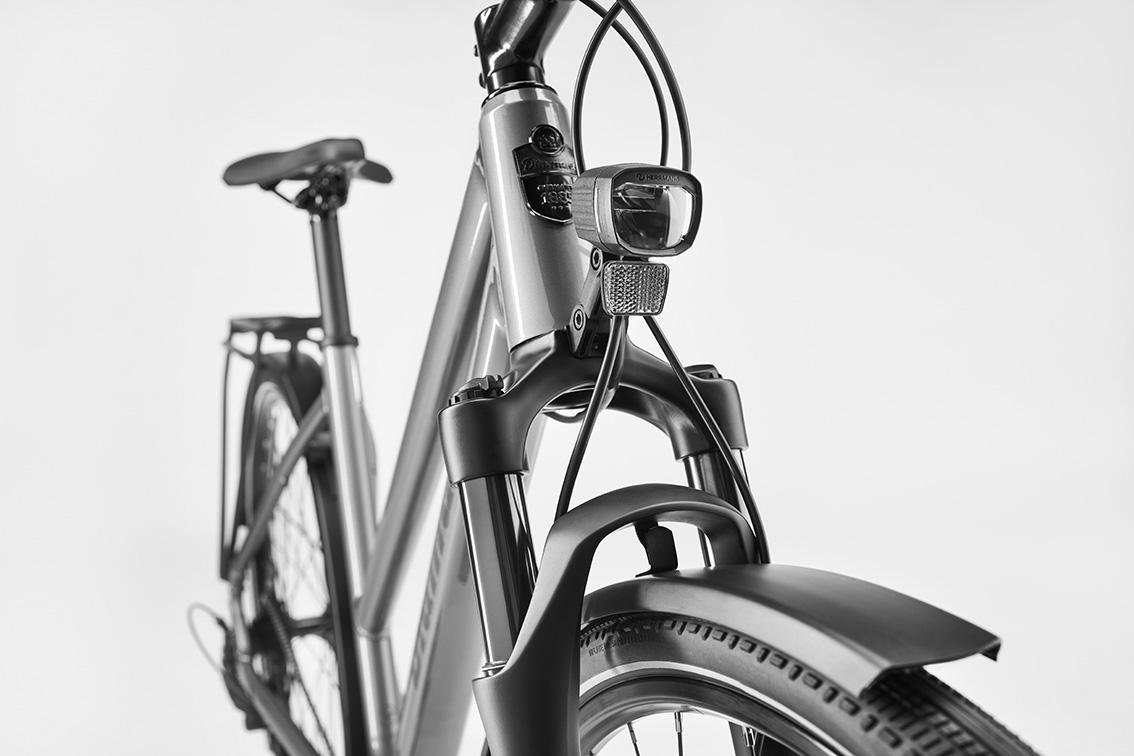 Das praktische, dynamobetriebene Frontlicht spart Gewicht und sorgt für Beleuchtung, die in Tests hervorragend abgeschnitten hat.