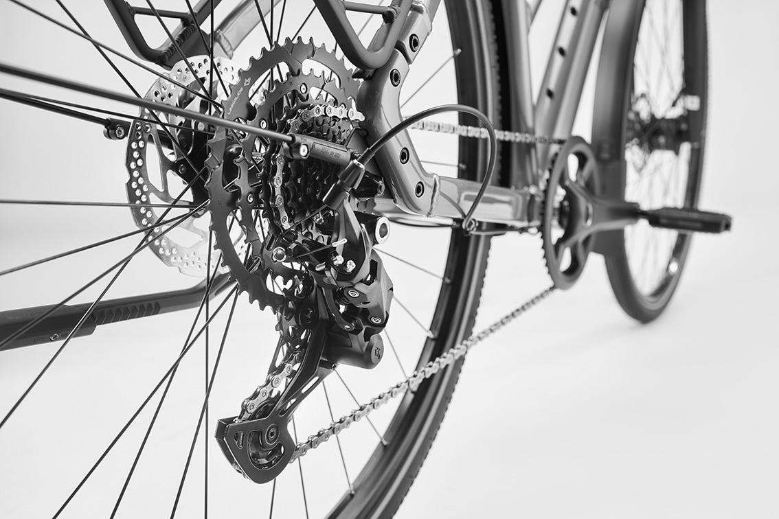 - Die 1x9-Kettenschaltung aus der Shimano CUES-Gruppe ist die ideale Wahl für intensiv genutzte Trekking® Bikes.
