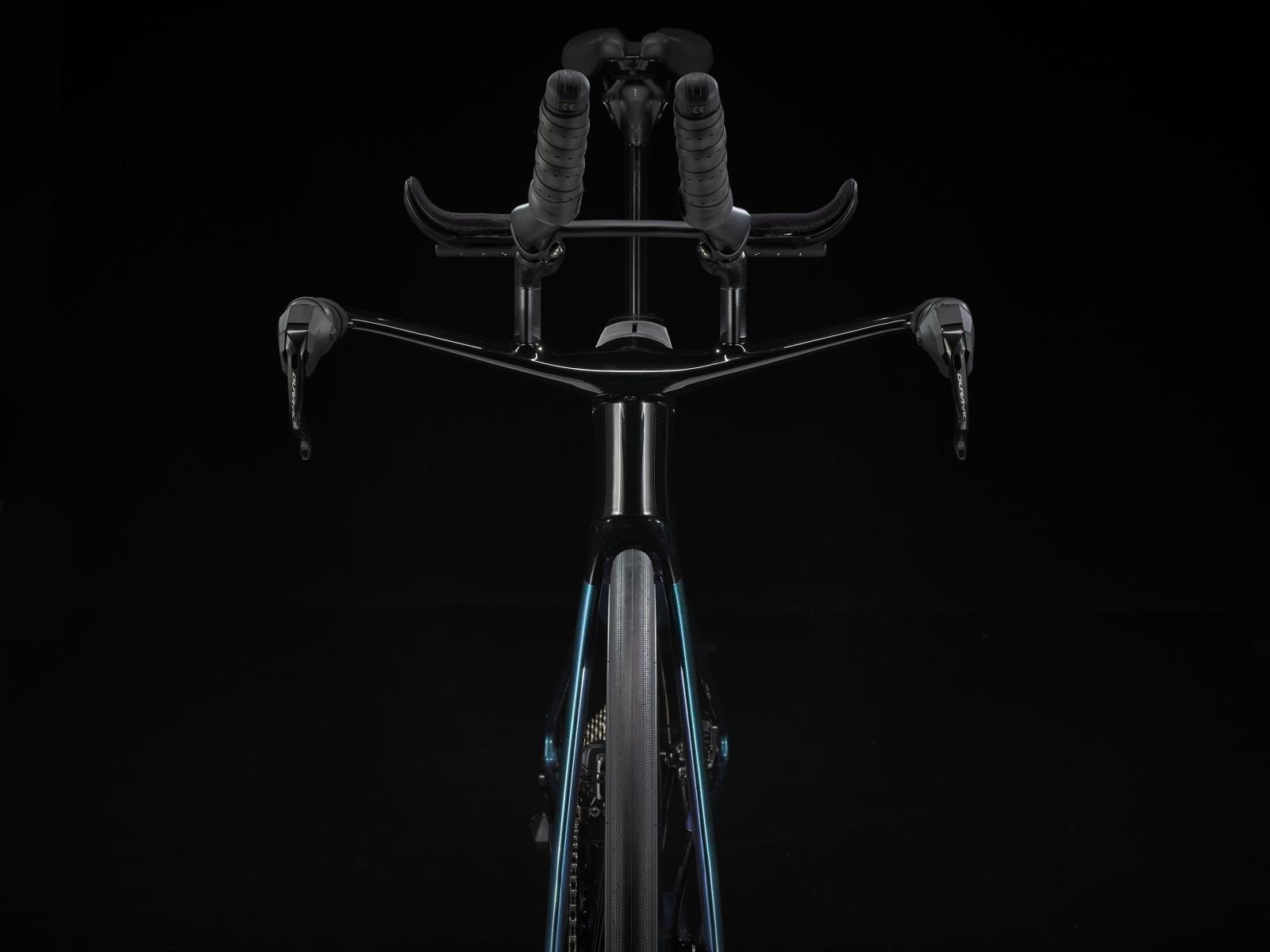 Einen ultraleichten Rahmen aus 800 Series OCLV Carbon, windschnittige Rohre mit Kammtail Virtual Foil Profil (KVF), eine Speed Concept Carbongabel mit aerodynamischem Profil, vibrationsd�mpfendes IsoSpeed und integrierte Aufbewahrungsl�sungen f�r Verpflegung, Fl�ssigkeit und Pannenkit. Dazu gibt es einen drahtlosen, elektronischen Shimano Ultegra Di2 12fach-Antrieb, eine vollst�ndig integrierte Lenker/Vorbau-Einheit, einen triathlonspezifischen Bontrager Hilo Comp Sattel f�r eine aggressive Aero-Sitzposition, Scheibenbremsen f�r zuverl�ssige Bremsleistung und Bontrager Aeolus Pro 51 Laufr�der aus OCLV Carbon.