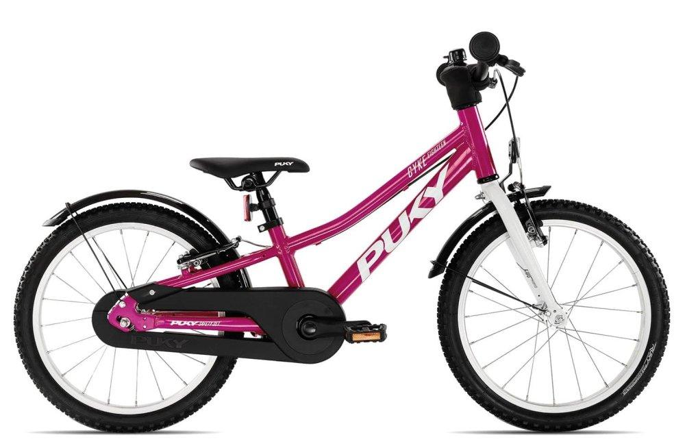 Das PUKY CYKE 18-1 steht für modernes Design, kindgerechte Geometrie und Leichtbaukomponenten, welche das Fahrradfahren für Kinder zum Erlebnis machen. PUKY CYKE 18-1 ist standardmäßig mit dem PUKY SAFETY SET ausgestattet und hat alle wesentlichen Komponenten für den täglichen Gebrauch an Board. Beispielsweise sind Schutzbleche, eine Glocke und ein Seitenständer schon im Lieferumfang enthalten. Das PUKY CYKE 18-1 verfügt über einen Rücktritt sowie ein normgerechtes V-Brake Bremssystem, das Kinder sicher zum stehen bringt. Die geringe Überstandshöhe garantiert schnelles und müheloses auf- und absteigen an Ampeln oder Überwegen. Im Vergleich zum Vorgängermodell PUKY ZLX 18 konnte das CYKE 18-1 glatte 1000 Gramm an Gewicht einsparen und bringt nur 7,9 kg auf die Waage. Das Verhältnis zwischen Gewicht des Bikes und dem des Kindes ist damit optimal ausbalanciert. PUKY CYKE 18-1 ist in den Farben racingblau und berry mit sportlichen Dekoren erhältlich.