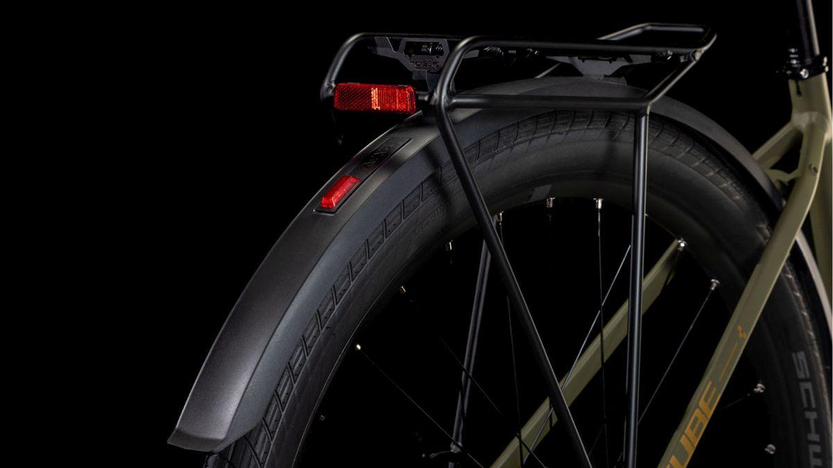 Sieht ein bisschen so aus wie ein 29 Zoll Mountainbike – ist es aber nicht! Der Trapezrahmen des Hyde FE besteht aus doppelt konifizierten Aluminiumrohrsätzen, die ihm eine stabile und zugleich leichte Struktur geben. Auf dem robusten semi-integrierten Gepäckträger reist sämtliches Hab und Gut sicher von A nach B, dabei halten Schutzbleche die Kleidung sauber und trocken. On top gibt's einen praktischen Seitenständer und ein dynamobetriebenes Beleuchtungssystem für erstklassige Sicht und Sichtbarkeit. Außerdem kann eine Wasserflasche mitfahren, falls die Tour am Wochenende doch mal länger dauert als geplant.Eine leichte Vollcarbongabel vollendet das Set-up – für höchste Lenkpräzision und einen eleganten Look.