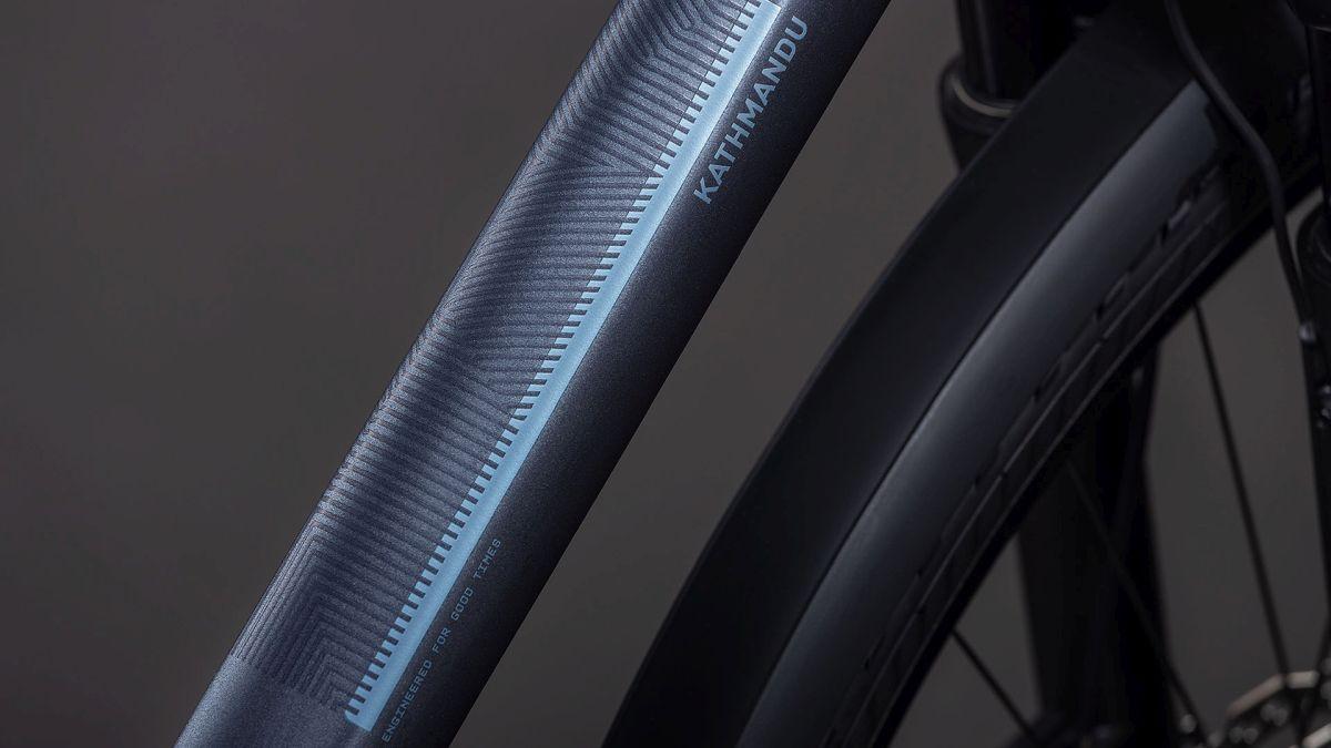 Wir hier bei CUBE sind unter anderem für unsere extreme Liebe zum Detail bekannt. Deshalb haben wir das Kathmandu auch mit dem integrierten Gepäckträger IC 3.0 ausgestattet, der nahtlos und formschön in unsere ACID Schutzbleche übergeht. Dazu gibt's am Hinterrad Aufnahmen für eine Flat Mount Scheibenbremse und einen Seitenständer. Seine cleane, aufgeräumte Optik verdankt das Chassis den im Smooth Welding Verfahren gestalteten Rohrverbindungen und im Inneren verlaufenden Zügen. So viel zum Aussehen. In Sachen Funktion haben wir den Hinterbau mit einer Steckachse versehen und ein konisches Steuerrohr für optimierte Stabilität und Lenkpräzision (selbst bei voller Beladung) verbaut. Also alles da, was es auf Tour braucht – den Rest machst du!