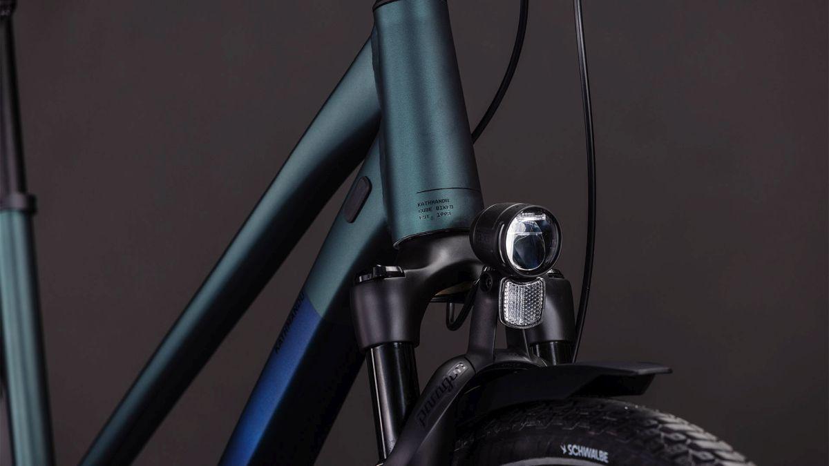 Der Trapezrahmen des Kathmandu aus dem Hause CUBE ist ein Sinnbild für klassische Eleganz! Der integrierte Gepäckträger IC 3.0 geht nahtlos und formschön in unsere ACID Schutzbleche über. Dazu gibt's am Hinterrad Aufnahmen für eine Flat Mount Scheibenbremse und einen Seitenständer. Seine cleane, aufgeräumte Optik verdankt das Chassis den im Smooth Welding Verfahren gestalteten Rohrverbindungen und im Unterrohr verlaufenden Zügen. So viel zum Aussehen. In Sachen Funktion haben wir den Hinterbau mit einer Steckachse versehen und ein konisches Steuerrohr für optimierte Stabilität und Lenkpräzision (selbst bei voller Beladung) verbaut. Also alles da, was es auf Tour braucht – den Rest machst du!