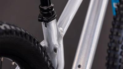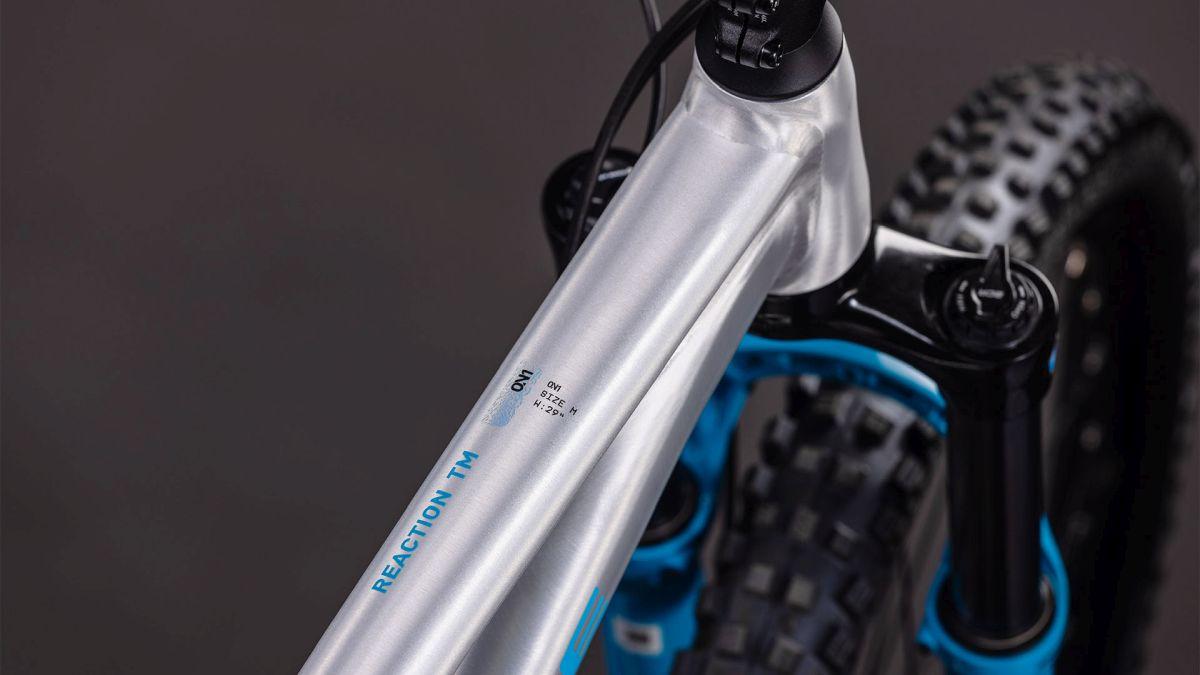Bergab geht's beim ambitionierten Trail-Riding ja immer irgendwie – aber „irgendwie" ist dem Reaction TM nicht gut genug. Mit 65° Steuerrohrwinkel, 73.5° Sitzrohrwinkel und niedriger Überstandhöhe fährt sich dieser Rahmen auf ruppigen, anspruchsvollen Trails konsequent stabil und zuverlässig. Dank kurzen Kettenstreben befindet sich das Hinterrad direkt unter dem Fahrer, was das Handling präzisiert und die Traktion perfektioniert. Außerdem haben wir genügend Platz für die Montage von Reifen bis 2.6 Zoll gelassen. Dazu kommen standardmäßig im Inneren verlaufende Züge für die versenkbare Sattelstütze und ein UDH Schaltauge für einfache Ersatzteilverfügbarkeit. Ebenso robust gibt sich unser stabiler spritzgegossener Kettenschutz für geräuscharmes Abfahren – und dank der ISCG Kettenführung bleibt die Kette jederzeit auf Spur.