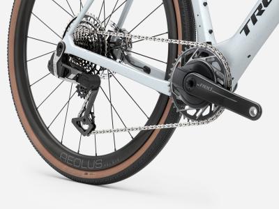 Einen leichten und aerodynamischen Rahmen aus 800 Series OCLV Carbon mit IsoSpeed-Komforttechnologie und vielen Befestigungspunkten für die wichtigsten Utensilien am Renntag. Bontrager Aeolus RSL 37V Carbonlaufräder und eine Trek Aero RSL Lenker-Vorbau-Einheit aus Carbon für ein leichtgewichtiges und agiles Fahrverhalten. Außerdem SRAMs leichtesten und ergonomischsten RED XPLR AXS Antrieb mit kabelloser Schaltung für ruppige Straßen.