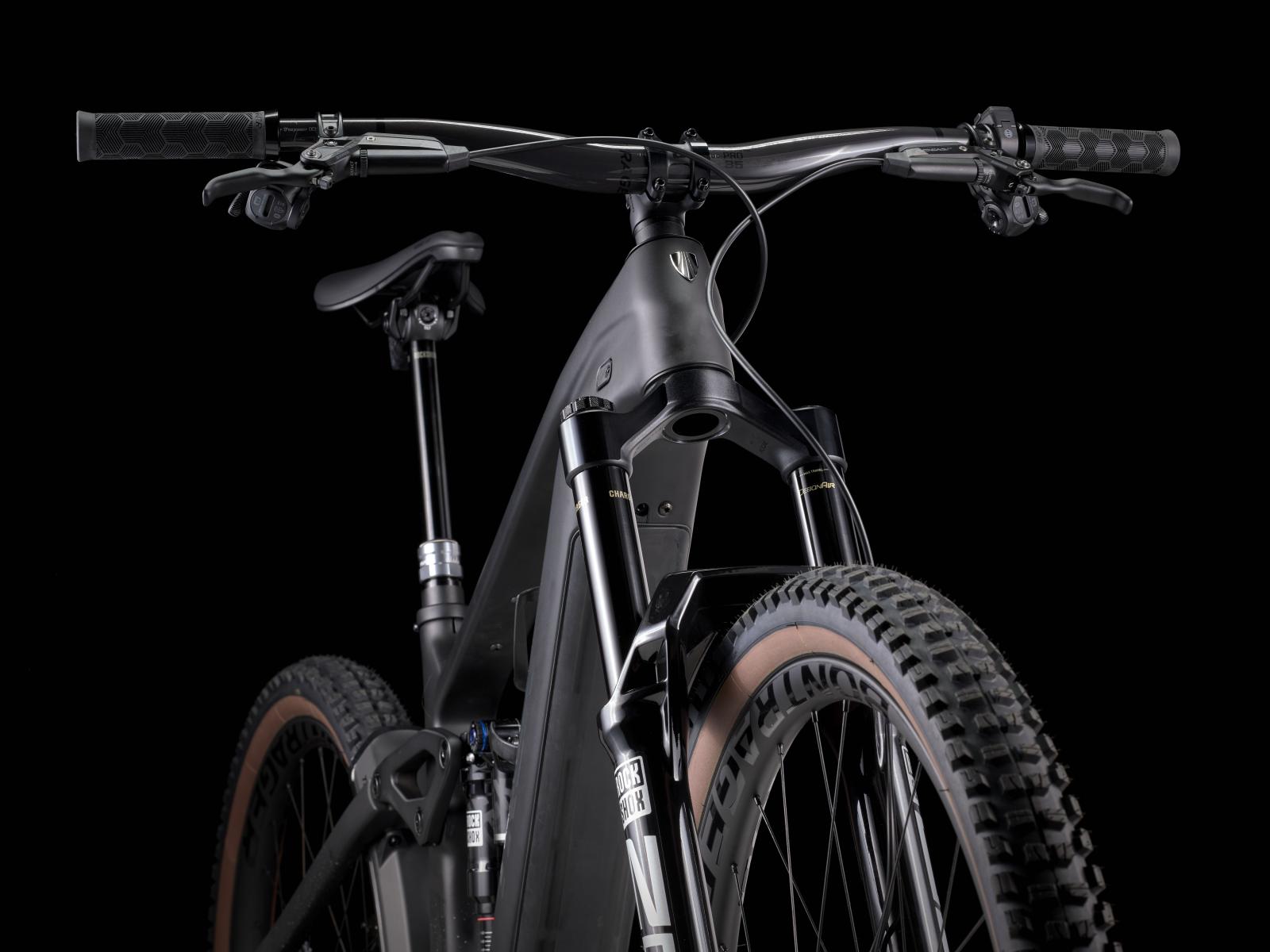 Einen Rahmen aus OCLV Mountain Carbon mit Bosch Performance CX Motor mit 250 W Leistung und 85 Nm Drehmoment samt abnehmbarem, integriertem RIB 2.0 Akku mit massiven 800 Wh Kapazität. Eine RockShox ZEB Ultimate Gabel mit 160 mm Federweg, DebonAir Federung und Charger 3 RC2 Dämpfung sowie einen RockShox Super Deluxe Hinterbaudämpfer mit ebenfalls 160 mm Hub. Bontrager Line Pro 30 Tubeless-Ready-Carbonlaufräder, eine drahtlose, elektronische SRAM X0 AXS Transmission für saubere Gangwechsel auch unter Last, kräftig zupackende, hydraulische SRAM Maven Scheibenbremsen und eine RockShox Reverb AXS Variosattelstütze.