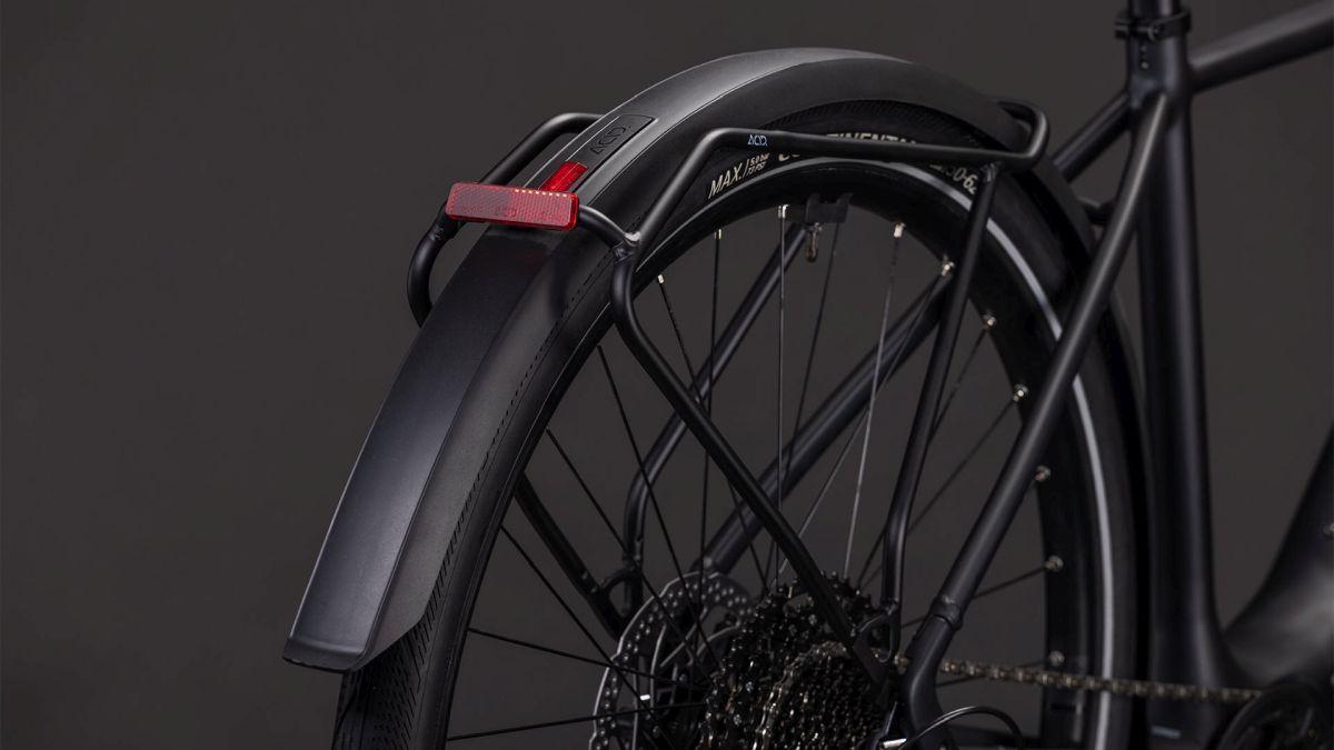 Ultraschlank und superdezent – kann das ein E-Bike-Rahmen sein? Oh ja, und zwar der des Editor Hybrid FE. Seine leichte, robuste Aluminiumkonstruktion mit den im Smooth Welding Verfahren gestalteten Hauptrohrverbindungen ergibt ein elegantes Chassis, das wir mit einer leichten und zugleich stabilen Vollcarbongabel ergänzt haben. Um die Optik möglichst clean zu halten, verlaufen die Leitungen im Inneren und der 400 Wh starke Akku wurde ästhetisch ins Unterrohr integriert, was auch noch Platz und Gewicht spart. Dazu kommt ein vielseitiger, robuster Gepäckträger am Heck und ein optionaler Front-Gepäckträger für sämtliches Hab und Gut auf dem Weg durch die City. Außerdem Schutzbleche, helle Lichter und ein praktischer Seitenständer. Kurz: Wir haben an alles gedacht, was im Großstadtdschungel wichtig ist!