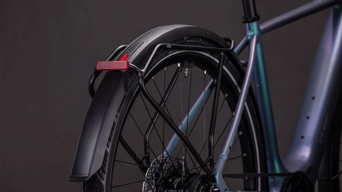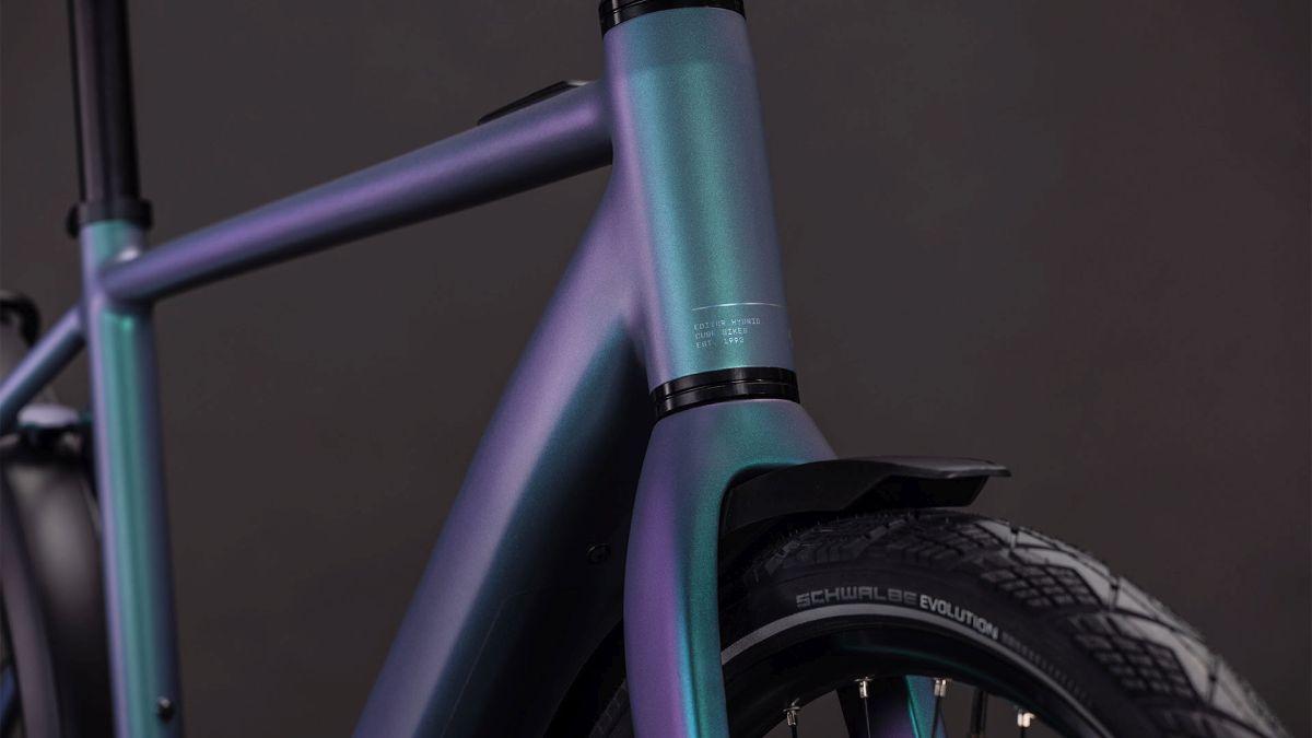 Ultraschlank und superdezent – kann das ein E-Bike-Rahmen sein? Oh ja, und zwar der des Editor Hybrid FE. Seine leichte, robuste Aluminiumkonstruktion mit den im Smooth Welding Verfahren gestalteten Hauptrohrverbindungen ergibt ein elegantes Chassis, das wir mit einer leichten und zugleich stabilen Vollcarbongabel ergänzt haben. Um die Optik möglichst clean zu halten, verlaufen die Leitungen im Inneren und der 400 Wh starke Akku wurde ästhetisch ins Unterrohr integriert, was auch noch Platz und Gewicht spart. Dazu kommt ein vielseitiger, robuster Gepäckträger am Heck und ein optionaler Front-Gepäckträger für sämtliches Hab und Gut auf dem Weg durch die City. Außerdem Schutzbleche, helle Lichter und ein praktischer Seitenständer. Kurz: Wir haben an alles gedacht, was im Großstadtdschungel wichtig ist!
