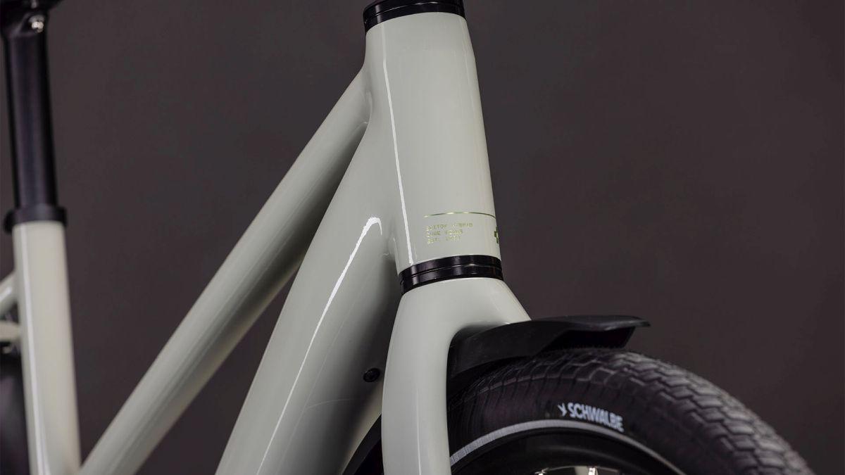 Understatement trifft Klasse – so gesehen beim Trapezrahmen des Editor Hybrid FE. Seine leichte, robuste Aluminiumkonstruktion mit den im Smooth Welding Verfahren gestalteten Hauptrohrverbindungen ergibt ein elegantes Chassis, das wir mit einer leichten und zugleich stabilen Vollcarbongabel ergänzt haben. Um die Optik möglichst clean zu halten, verlaufen die Leitungen im Inneren und der 400 Wh starke Akku wurde ästhetisch ins Unterrohr integriert, was auch noch Platz und Gewicht spart. Dazu kommt ein vielseitiger, robuster Gepäckträger am Heck und ein optionaler Front-Gepäckträger für sämtliches Hab und Gut auf dem Weg durch die City. Außerdem Schutzbleche, helle Lichter und ein praktischer Seitenständer. Kurz: Wir haben an alles gedacht, was im Großstadtdschungel wichtig ist!