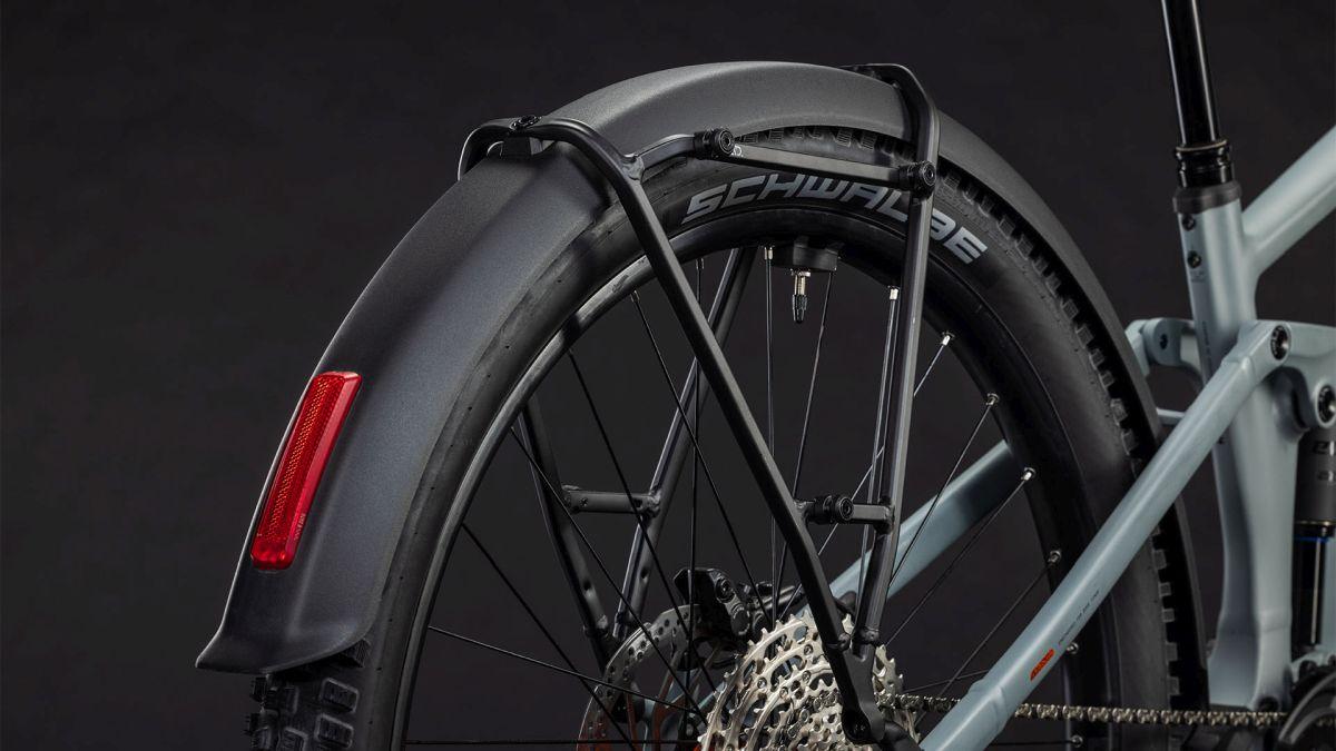 Ein Blick auf die serienmäßig verbauten Schutzbleche, den semi-integrierten Gepäckträger und die Lichtanlage und es ist klar: Beim Stereo Hybrid ONE44 FE handelt es sich um einen absoluten Vielseitigkeitsprofi. Doch das praktische Zubehör erzählt nur einen Teil der Geschichte. Sein Bosch CX Motor mit bis zu 100 Nm Drehmoment wird von einem kompakten 800 Wh PowerTube Akku gespeist. 140 mm Federweg vorne und hinten sorgen für erstklassiges Handling und bärenstarke Performance im Gelände. Außerdem spielt unser Internal Cable Routing der cleanen, eleganten Optik des Rahmens in die Karten. Dazu kommen ein UDH Schaltauge für einfache Ersatzteilverfügbarkeit und eine unauffällig und formschön ins Design integrierte Direct Mount Kettenführung. Clever: Dank Size Split haben wir für so gut alle die richtige Passform im Angebot.
