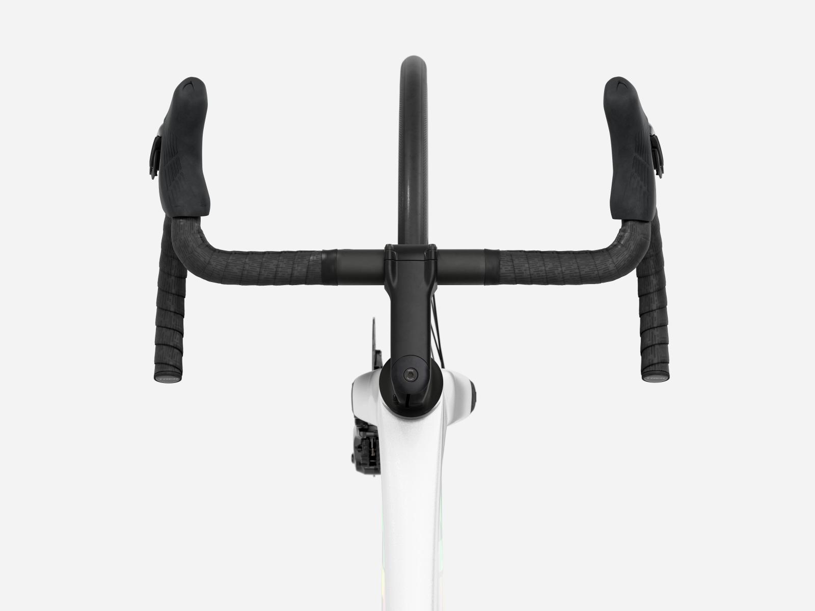 Der im Vergleich zum Unterlenker schmalere Oberlenker des Madone Gen 8 ermöglicht eine auf Aerodynamik oder Power optimierte Positionierung auf dem Bike. Und dank zweiteiligem Lenker/Vorbau-Design lässt sich die Passform schnell und einfach anpassen.