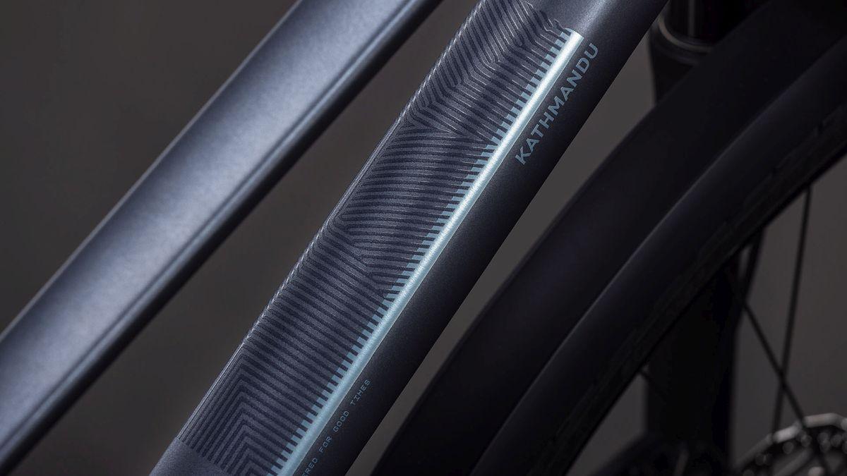 Der Trapezrahmen des Kathmandu aus dem Hause CUBE ist ein Sinnbild für klassische Eleganz! Der integrierte Gepäckträger IC 3.0 geht nahtlos und formschön in unsere ACID Schutzbleche über. Dazu gibt's am Hinterrad Aufnahmen für eine Flat Mount Scheibenbremse und einen Seitenständer. Seine cleane, aufgeräumte Optik verdankt das Chassis den im Smooth Welding Verfahren gestalteten Rohrverbindungen und im Unterrohr verlaufenden Zügen. So viel zum Aussehen. In Sachen Funktion haben wir den Hinterbau mit einer Steckachse versehen und ein konisches Steuerrohr für optimierte Stabilität und Lenkpräzision (selbst bei voller Beladung) verbaut. Also alles da, was es auf Tour braucht – den Rest machst du!