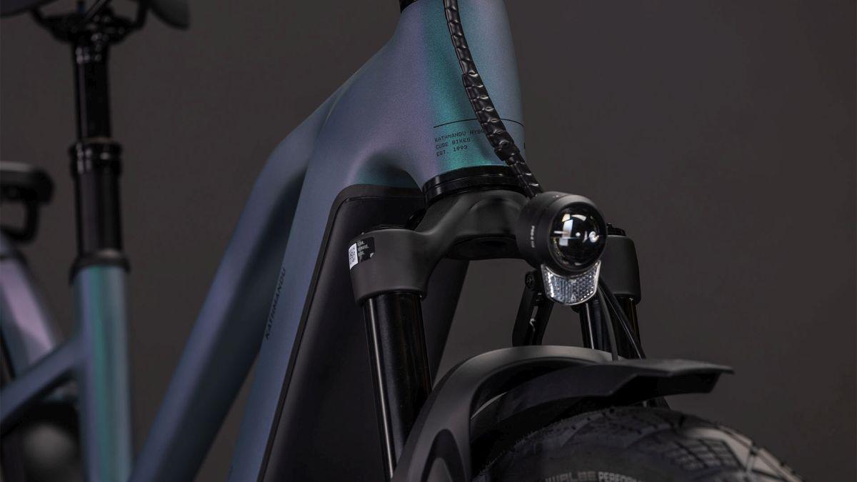 Elegantes, zeitloses Design – das ist das CUBE Kathmandu Hybrid. Auf den ersten Blick zumindest. Ein zweiter gibt den Weg frei auf jede Menge Innovationen und clevere Details. Dabei ist der samt 800 Wh PowerTube Akku ästhetisch und sauber ins Design integrierte CX Motor von Bosch nur eins der Highlights. Ein weiteres ist unsere Efficient Comfort Geometry, die harmonisch mit der 100 mm Federgabel Hand in Hand arbeitet, was die Kontrolle vor allem bei schwierigen Bedingungen optimiert. Dazu die interne Zugverlegung, die den cleanen Look des Chassis unterstreicht. Was noch? Ein vielseitiges, beinahe unzerstörbares UDH für einfache Ersatzteilverfügbarkeit, ein integrierter Kettenschutz und unser stabiler, robuster, überaus formschöner integrierter Gepäckträger IC 3.0, auf dem alles Platz findet, was auf Abenteuertour mit muss.