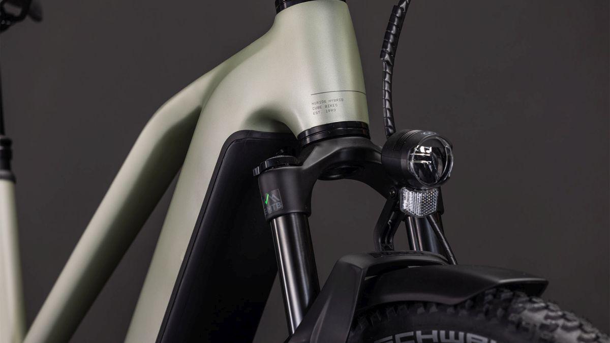 Kompromisse sind nicht so unser Ding hier bei CUBE, deshalb haben wir das Nuride Hybrid EXC 800 auch mit der superzuverlässigen 12-fach Shimano XT Schaltung sowie einem Bosch CX Antrieb mit 800 Wh Akku und Kiox 300 Display bestückt. Außerdem mit griffigen 57 mm Pneus von Schwalbe und einer RockShox Recon Silver Luftfedergabel mit 100 mm Federweg, die vor allem auf holprigen Wegen jede Menge Fahrkomfort ins Spiel bringen. Sicheres Verzögern und Anhalten selbst bei Nässe sind das Spezialgebiet der leistungsstarken hydraulischen 4-Kolben-Scheibenbremsen von Shimano. Last, but not least das Sahnehäubchen: die Zubehörausstattung, bestehend aus Schutzblechen, Lichtern, unserem robusten semi-integrierten Gepäckträger 2.0 und einem stabilen Seitenständer. Da kann das nächste Zweiradabenteuer direkt losgehen, oder?