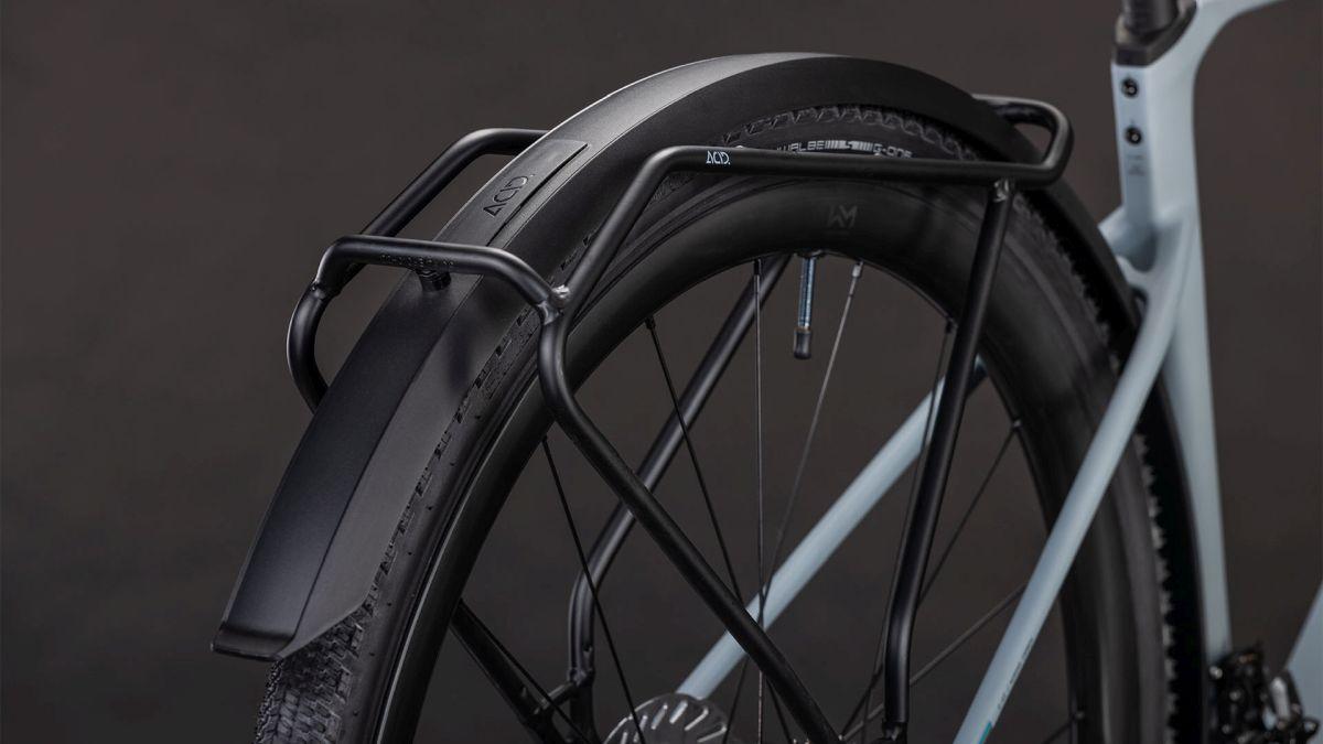 Im Chassis des Nuroad C:62 steckt unser gesamtes Know-how in Sachen Carbonrahmenbau speziell für den Gravel-Einsatz. Seine großzügige Reifenfreiheit ermöglicht die Aufnahme von bis zu 45 mm breiten Pneus, sogar mit integrierten Schutzblechen. Außerdem fahren standardmäßig ein Heck-Gepäckträger und Beleuchtungssystem mit. Die Carbongabel aus unserem C:62® Carbon ist für noch höhere Lastenkapazität mit zwei verschiedenen Gepäckträger-Befestigungspunkten versehen. Eine integrierte Sattelklemmung und semi-integrierte Züge unterstreichen den cleanen, eleganten Look. Ein weiteres Highlight ist das geringe Gewicht: lediglich 1150 g (bei mittlerer Größe und ohne Zubehör). Insofern ist der Rahmen so leicht, dass er selbst längere Gravel-Ausfahrten zum genussvollen Spaziergang macht.