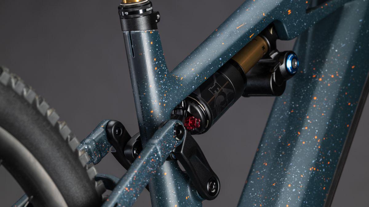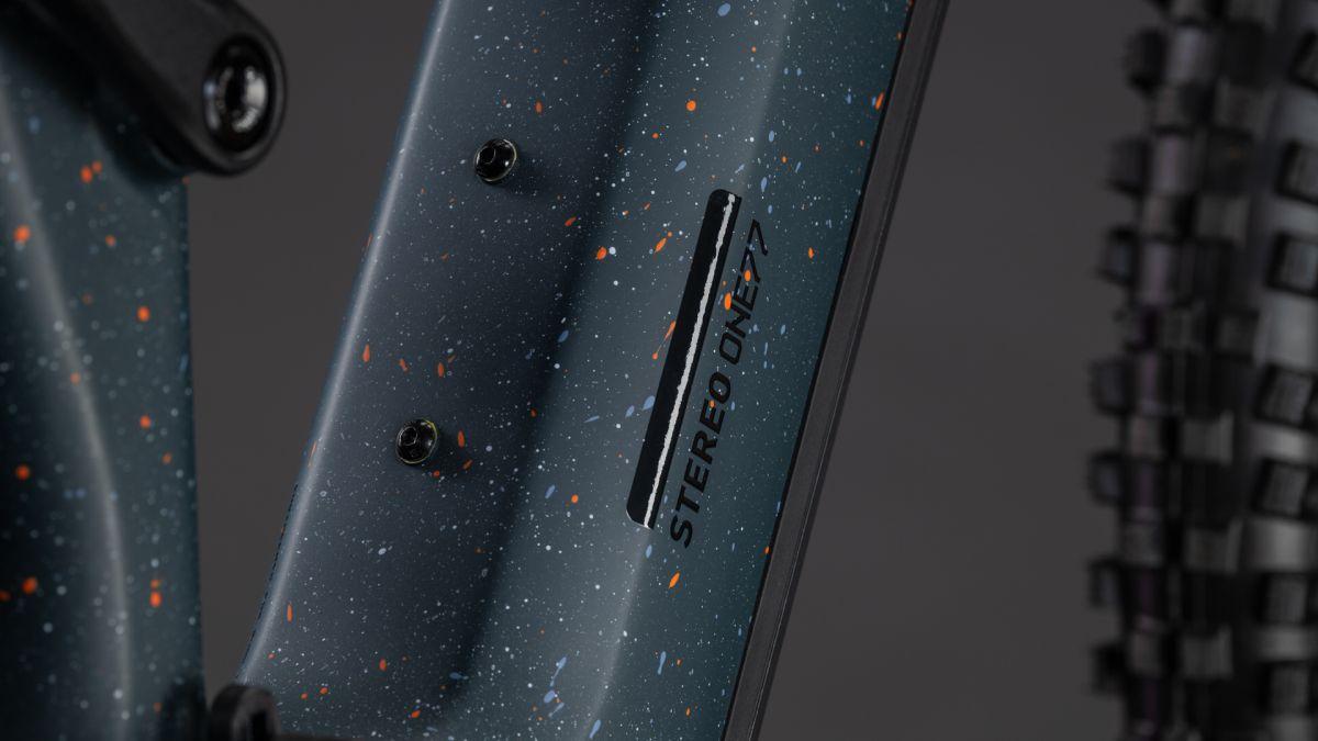 Der Rahmen des Stereo Hybrid ONE77 HPC ist wahrlich eine Klasse für sich, denn hier treffen 170 mm Federweg an der Front und am Heck auf ein Mullet-Set-up mit einem 29 Zoll Vorderrad und 27.5 Zoll Hinterrad. Damit werden Big-Mountain-Trail-Träume wahr! Wie immer bei CUBE maximal detailverliebt konstruiert auch der Rest: Integrated Cable Routing sorgt für einen supercleanen Look. Dazu kommt ein Steuersatz zur Winkelverstellung, mit dem sich das Handling an individuelle Vorlieben und Anforderungen anpassen lässt. Außerdem haben wir den 800 Wh starken PowerTube Akku gleich über dem Bosch CX-R Motor sauber und formschön ins Carbon-Unterrohr integriert. Für einfachere Ersatzteilverfügbarkeit gibt's ein UDH am Aluminium-Hinterbau – und weil wir auch eine Direct Mount Kettenführung verbaut haben, geht's mit diesem Fully selbst bei schwierigen Bedingungen weiter, weiter und immer weiter.