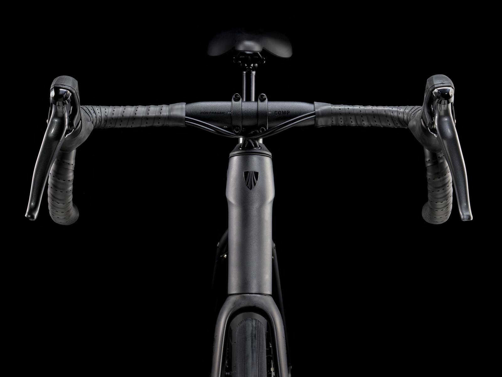 Lenker: Bontrager Comp, Aluminium, 31,8 mm Klemmdurchmesser, 80 mm Reach, 121 mm Drop, 44 cm Oberlenkerbreite, 48 cm Unterlenkerbreite // Bontrager Comp VR-C, Aluminium, 31,8 mm, 100 mm Reach, 1