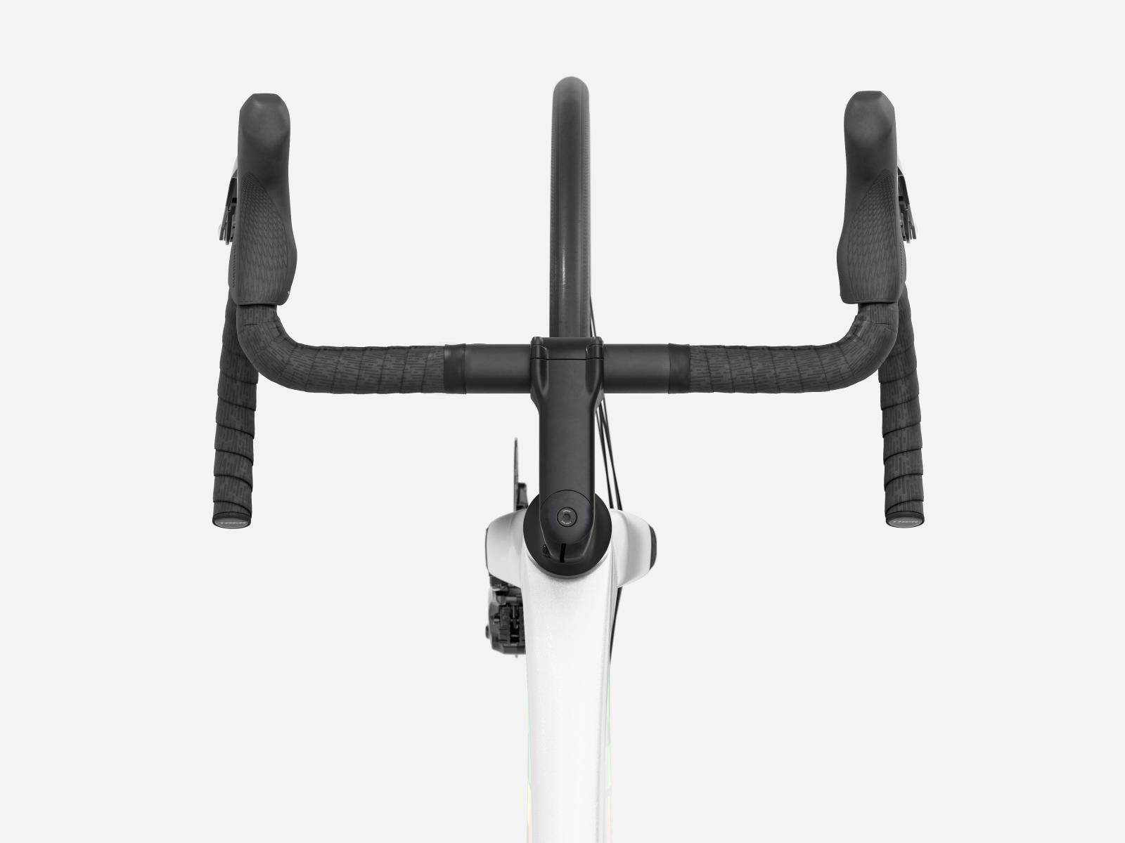 Der im Vergleich zum Unterlenker schmalere Oberlenker des Madone Gen 8 ermöglicht eine auf Aerodynamik oder Power optimierte Positionierung auf dem Bike. Und dank zweiteiligem Lenker/Vorbau-Design lässt sich die Passform schnell und einfach anpassen.
