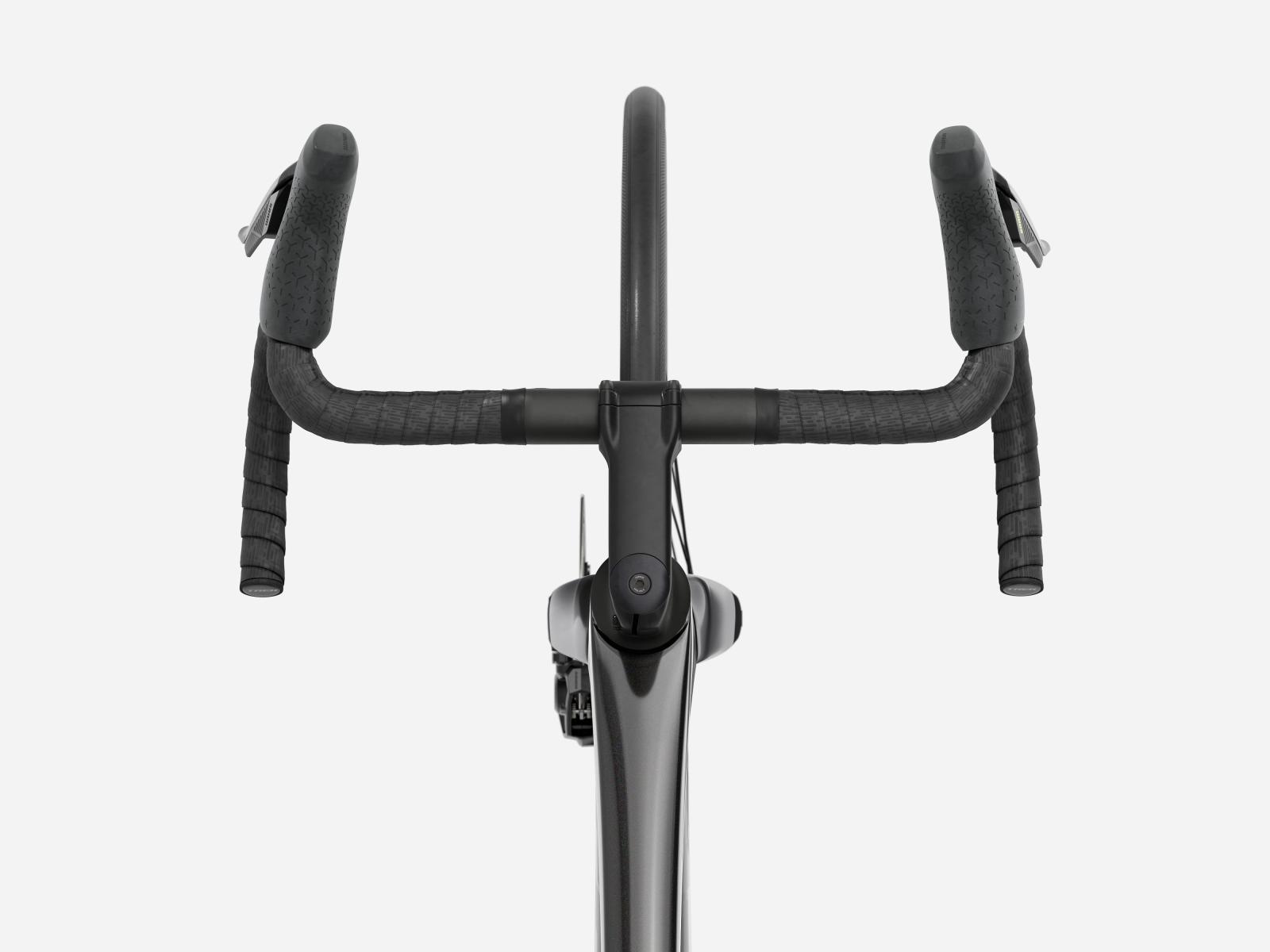Der im Vergleich zum Unterlenker schmalere Oberlenker des Madone Gen 8 ermöglicht eine auf Aerodynamik oder Power optimierte Positionierung auf dem Bike. Und dank zweiteiligem Lenker/Vorbau-Design lässt sich die Passform schnell und einfach anpassen.