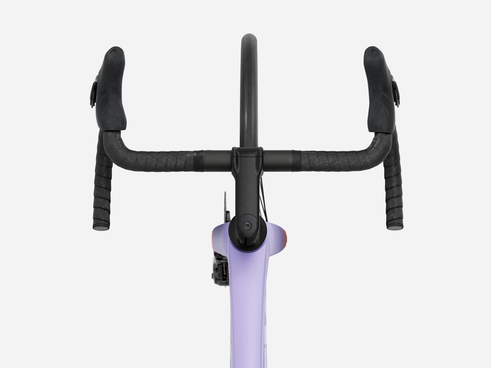Der im Vergleich zum Unterlenker schmalere Oberlenker des Madone Gen 8 ermöglicht eine auf Aerodynamik oder Power optimierte Positionierung auf dem Bike. Und dank zweiteiligem Lenker/Vorbau-Design lässt sich die Passform schnell und einfach anpassen.