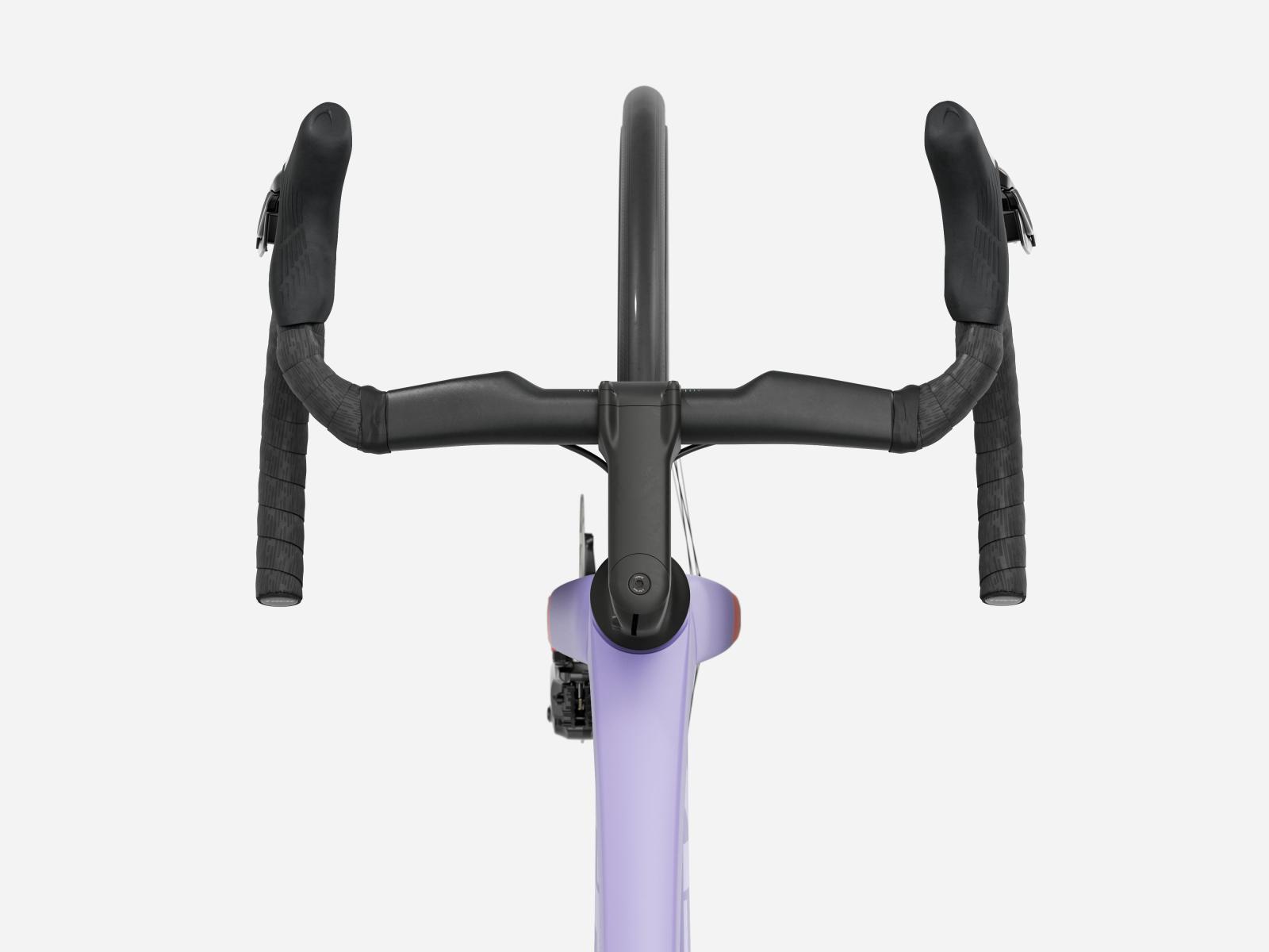 Der im Vergleich zum Unterlenker schmalere Oberlenker des Madone Gen 8 ermöglicht eine auf Aerodynamik oder Power optimierte Positionierung auf dem Bike. Und dank zweiteiligem Lenker/Vorbau-Design lässt sich die Passform schnell und einfach anpassen.