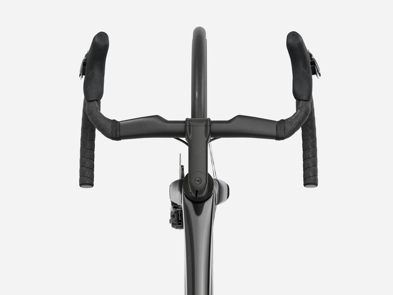 Der im Vergleich zum Unterlenker schmalere Oberlenker des Madone Gen 8 ermöglicht eine auf Aerodynamik oder Power optimierte Positionierung auf dem Bike. Und dank zweiteiligem Lenker/Vorbau-Design lässt sich die Passform schnell und einfach anpassen.