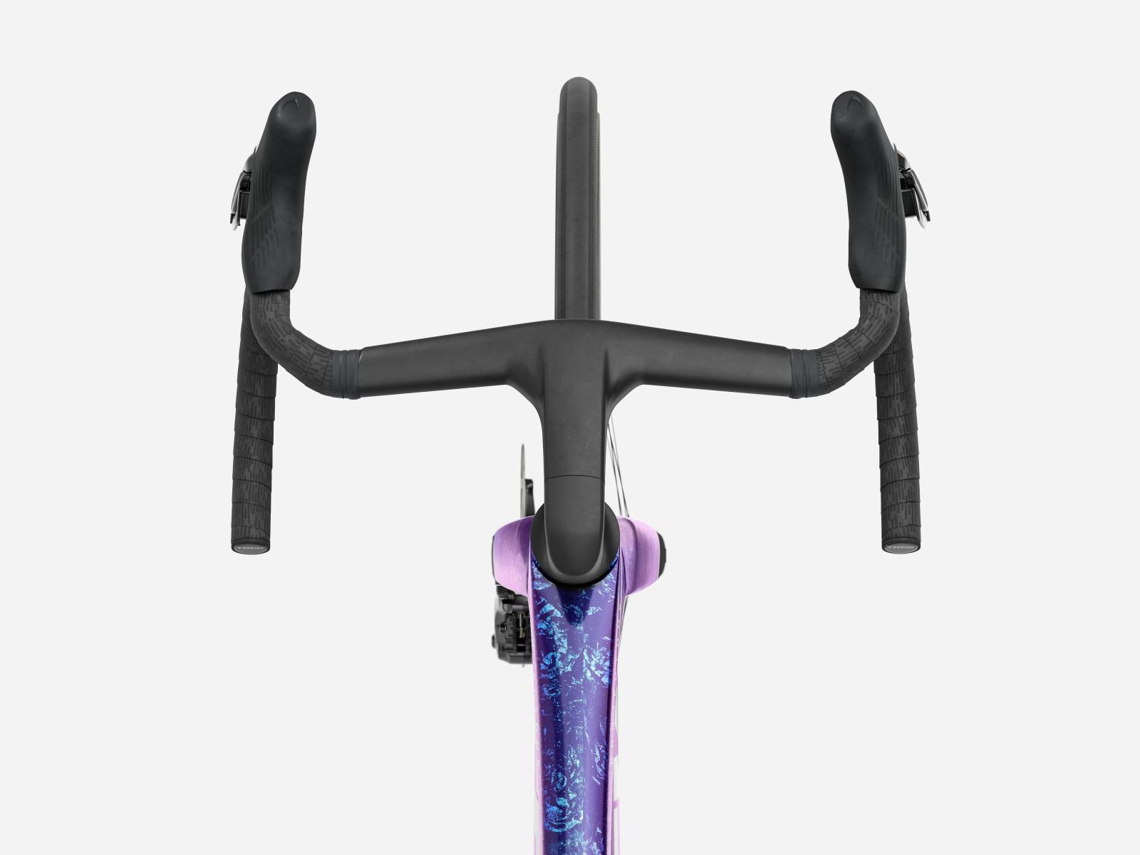 Die neue einteilige Lenker/Vorbau-Einheit ist leichter, aerodynamischer und ergonomischer als die Vorgängerversion. Darüber hinaus ermöglicht der im Vergleich zum Unterlenker 3 cm schmalere Oberlenker die Anpassung der Positionierung auf dem Bike, um entweder in der Oberlenkerposition von einer besseren Aerodynamik zu profitieren oder im Unterlenker mehr Kraft aufs Pedal zu bringen.