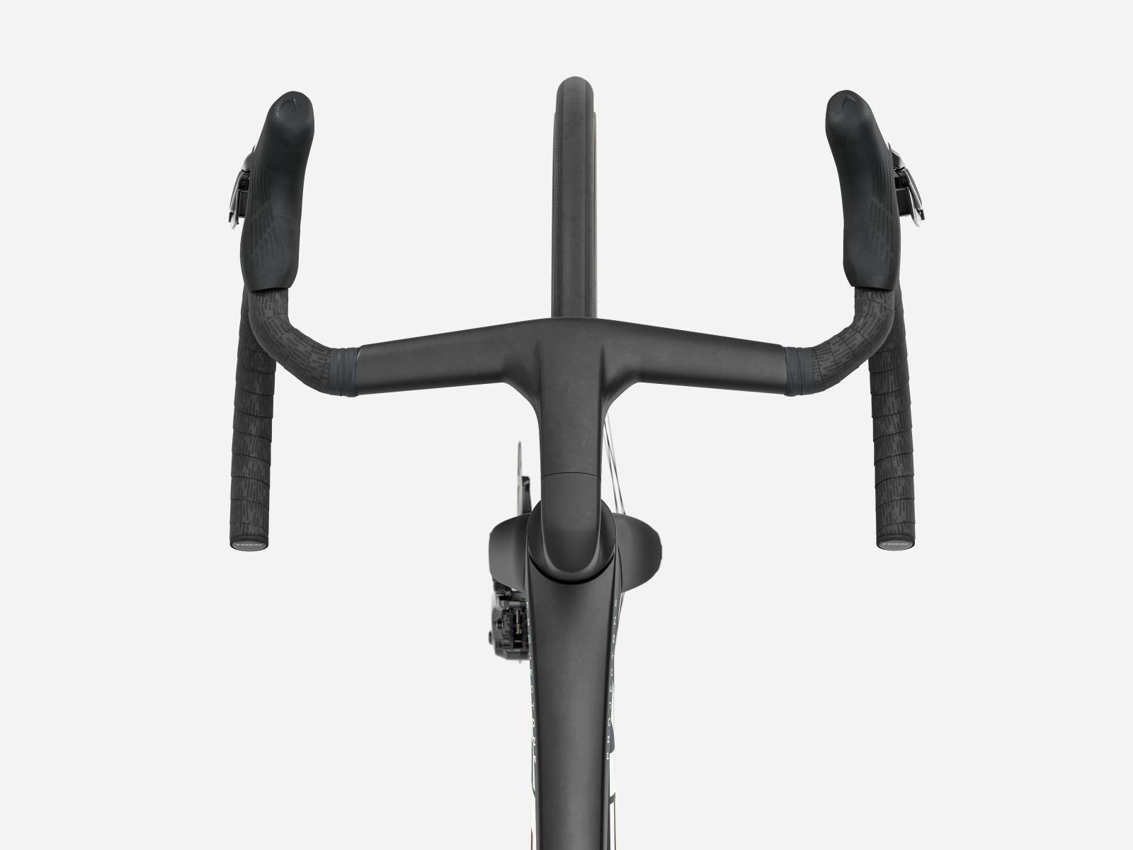 Die neue einteilige Lenker/Vorbau-Einheit ist leichter, aerodynamischer und ergonomischer als die Vorgängerversion. Darüber hinaus ermöglicht der im Vergleich zum Unterlenker 3 cm schmalere Oberlenker die Anpassung der Positionierung auf dem Bike, um entweder in der Oberlenkerposition von einer besseren Aerodynamik zu profitieren oder im Unterlenker mehr Kraft aufs Pedal zu bringen.