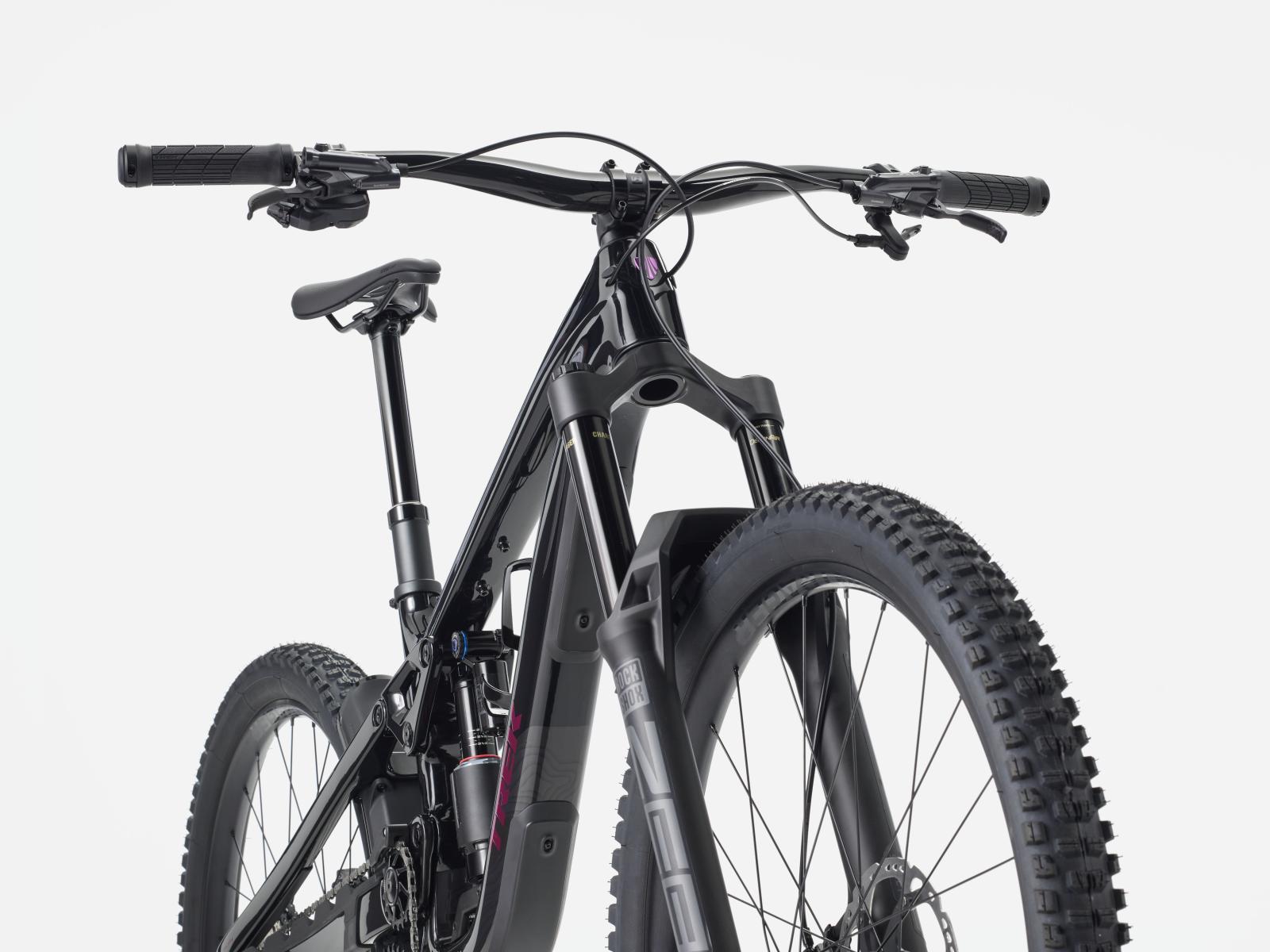 Einen Rahmen aus OCLV Mountain Carbon mit High-Pivot-Fahrwerk und Rahmenstaufach. Dazu gibt es 170 mm vorderen und hinteren Federweg dank RockShox ZEB Select+ Gabel mit DebonAir Federung und Charger 3 RC2 Dämpfung und RockShox Vivid Select+ Hinterbaudämpfer. Shimanos brandneue XT Di2 Drahtlosschaltung mit breiter Übersetzung, eine Bontrager Line Variosattelstütze und eine Mullet-Laufradkonfiguration – mit 29 Zoll vorn, 27,5 Zoll hinten – mit Bontrager Line Comp 30 Tubeless-Ready-Laufradsatz samt Rapid Drive 108 Nabe.