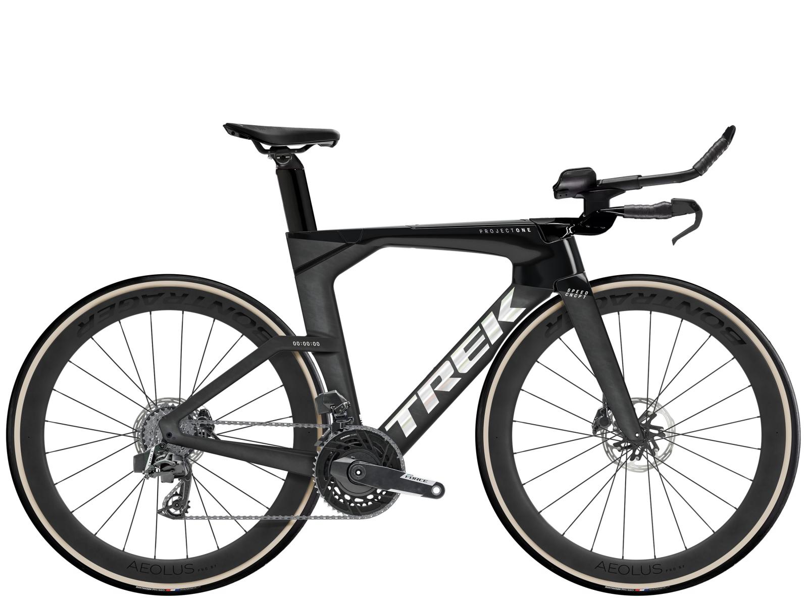 Einen ultraleichten Rahmen aus 800 Series OCLV Carbon, windschnittige Rohre mit Kammtail Virtual Foil Profil (KVF), eine Speed Concept Carbongabel mit aerodynamischem Profil, vibrationsdämpfendes IsoSpeed, integrierte Aufbewahrungslösungen für Verpflegung, Flüssigkeit und Pannenkit, einen drahtlosen, elektronischen SRAM Force AXS E1 12fach-Antrieb mit SRAM AXS Blips Schalthebeln, ein SRAM Force AXS Powermeter, eine vollständig integrierten Lenker/Vorbau-Einheit, einen triathlonspezifischen Bontrager Hilo Comp Sattel für eine aggressive Aero-Sitzposition, Scheibenbremsen für zuverlässige Bremsleistung und Bontrager Aeolus Pro 51