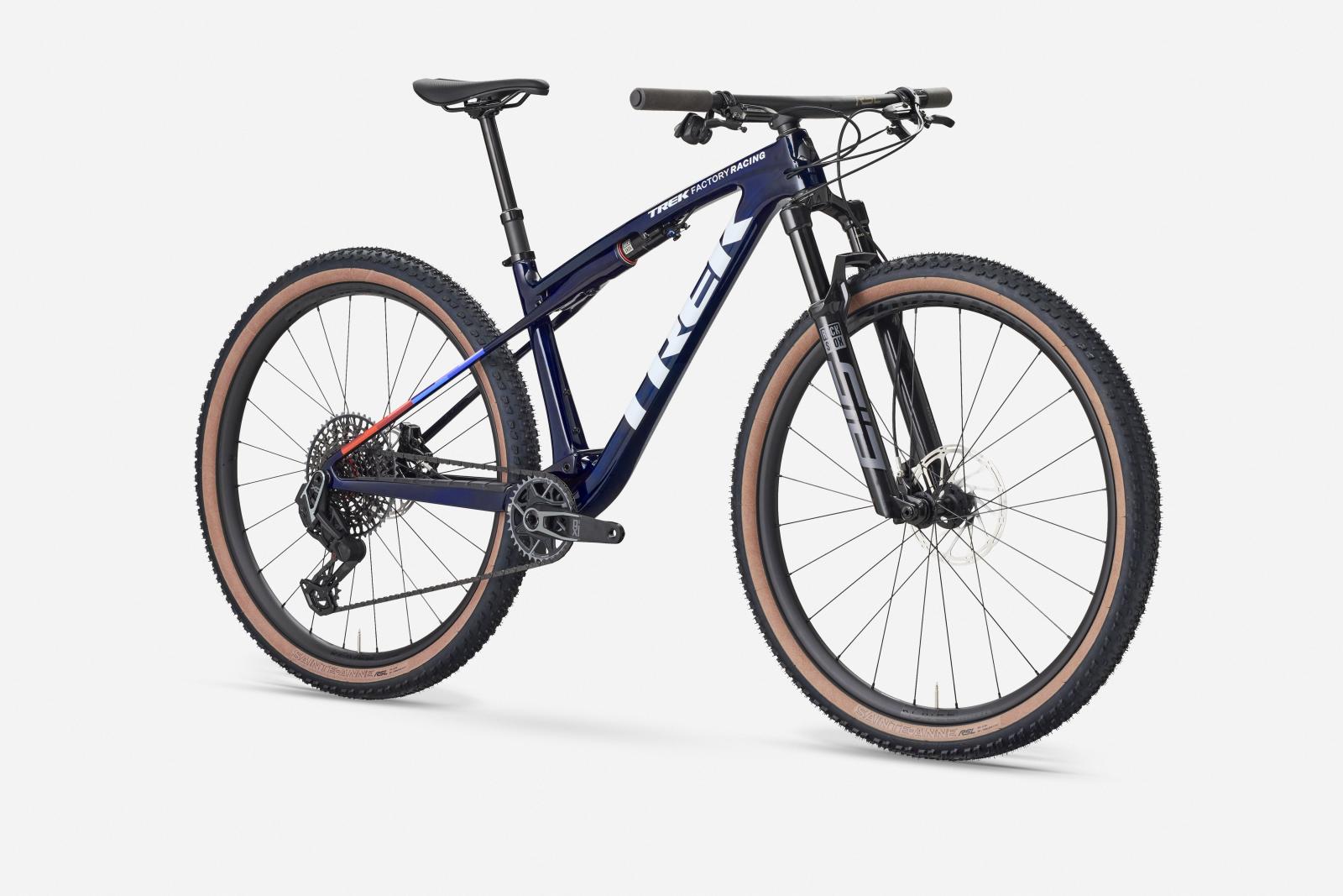 Einen federleichten Rahmen aus hochmoduligem SLR OCLV Mountain Carbon mit moderner XC-Geometrie. Außerdem bekommst du eine RockShox SID Select+ 110-mm-Federgabel mit DebonAir Federung und Charger Race Day Dämpfung und einen RockShox SIDLuxe IsoStrut 80-mm-Hinterbaudämpfer – natürlich komplett mit Remote-Lockout. Eine komplett drahtlose elektronische SRAM X0 AXS 12fach-Transmission, Bontrager Kovee Elite 23 Carbonlaufräder, eine integrierte Bontrager RSL Lenker/Vorbau-Einheit aus Carbon, eine Bontrager Line Variosattelstütze und hydraulische SRAM Level Silver 4-Kolben-Scheibenbremsen.