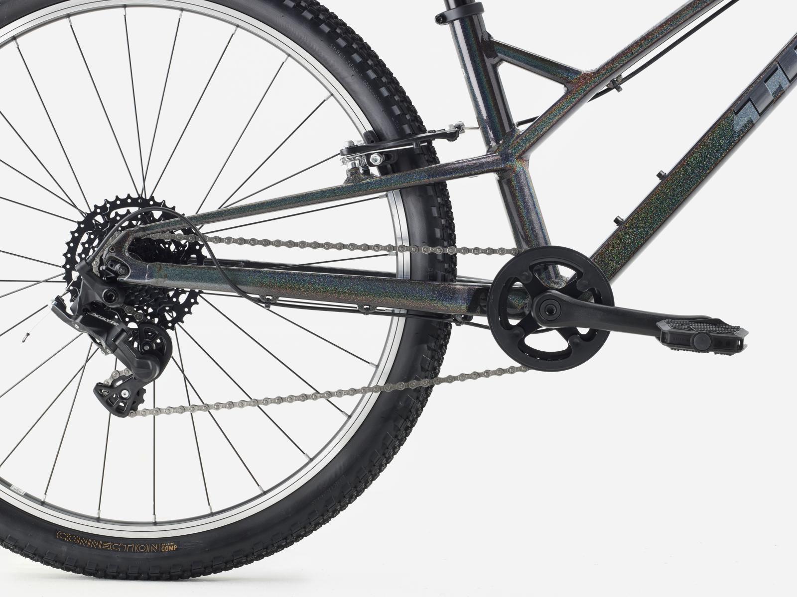 Einen Rahmen aus Alpha Silver Aluminium mit 26 Zoll großen Laufrädern und 2 Zoll breiten Reifen, die für Grip und Geschwindigkeit auf Asphalt konzipiert sind. Dazu gibt es eine speziell auf Kinderbedürfnisse zugeschnittene Ausstattung, wie etwa die intuitive 8-Gang-Schaltung von microSHIFT und unkomplizierte Felgenbremsen samt kindgerechten Bremshebeln.